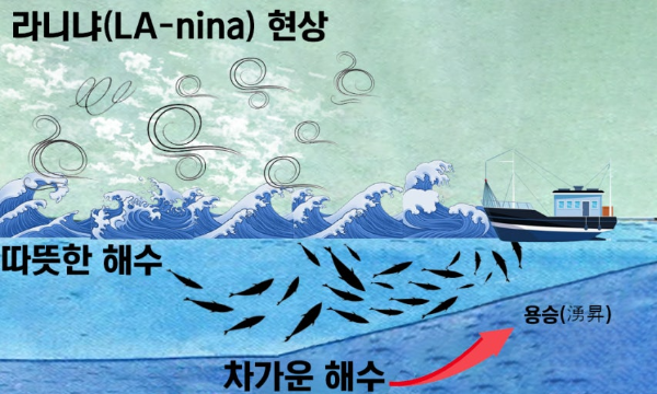 - 그 빈자리에 **심해의 차가운 물(용승수)**이 남미 해안 쪽으로 상승합니다.