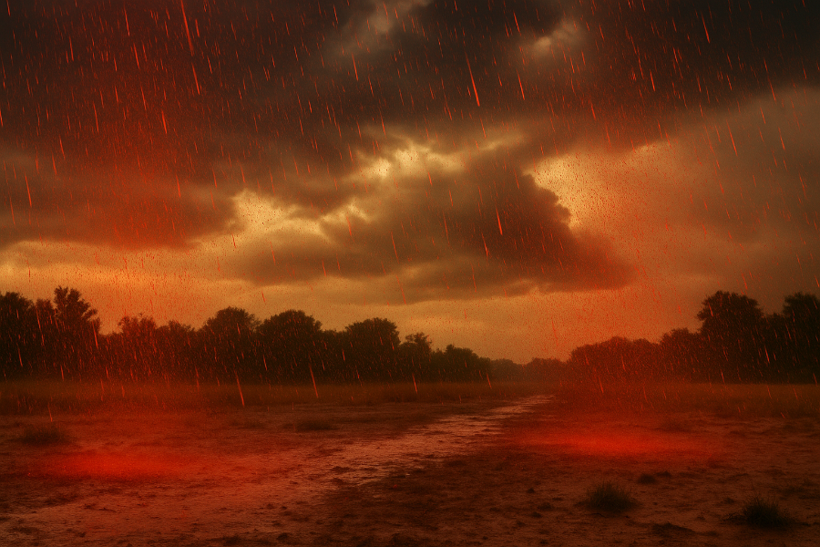 붉은 비, 여름 없는 해, 하늘의 개구리.
