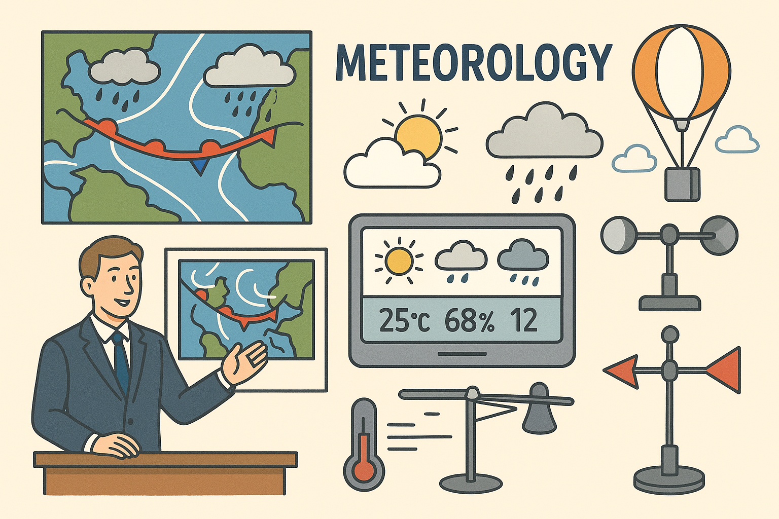 - 기후학(Climatology): 장기적인 대기 상태, 예를 들면 ‘한반도는 사계절이 뚜렷하다’ 같은 평균적 특징을 다룸