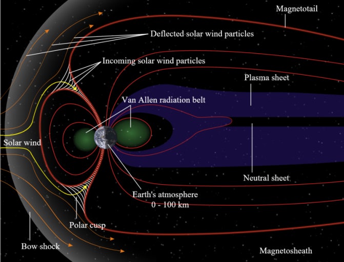 이 자기장은 태양에서 날아오는 고에너지 입자를 막아냅니다.