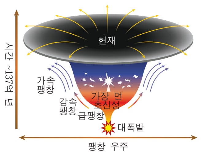 - ② 슈퍼노바·세페이드 변수법(SH₀ES 팀): 허블우주망원경(HST)을 이용해 가까운 은하의 세페이드 변수별과 Ia형 초신성을 관측한 결과, H₀ ≈ 73.0 km/s/Mpc로 계산되었습니다.